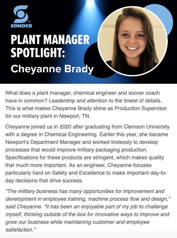 “Joining the team during a critical phase, Rachel quickly became a key player in the successful execution of the Sonoco Supplier Conference. Leveraging her marketing and communication expertise, she accelerated the final stages of planning while adeptly handling her primary responsibilities as a Communications Business Partner.